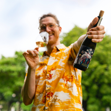 „Der wilde Rebsortenmix sorgt dafür, dass am Gaumen eine ähnlich wilde Party abgeht wie am Etikett.“