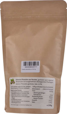 Iranische Pistazien der Premiumsorte Ahmad Aghaei von ausgewählten Plantagen, sanft geröstet und mit Salz und Zitrone verfeinert. Die idealen Klimaverhältnisse und die sorgsame Behandlung verleihen den Pistazien von kerngsund ihren besonderen Geschmack.